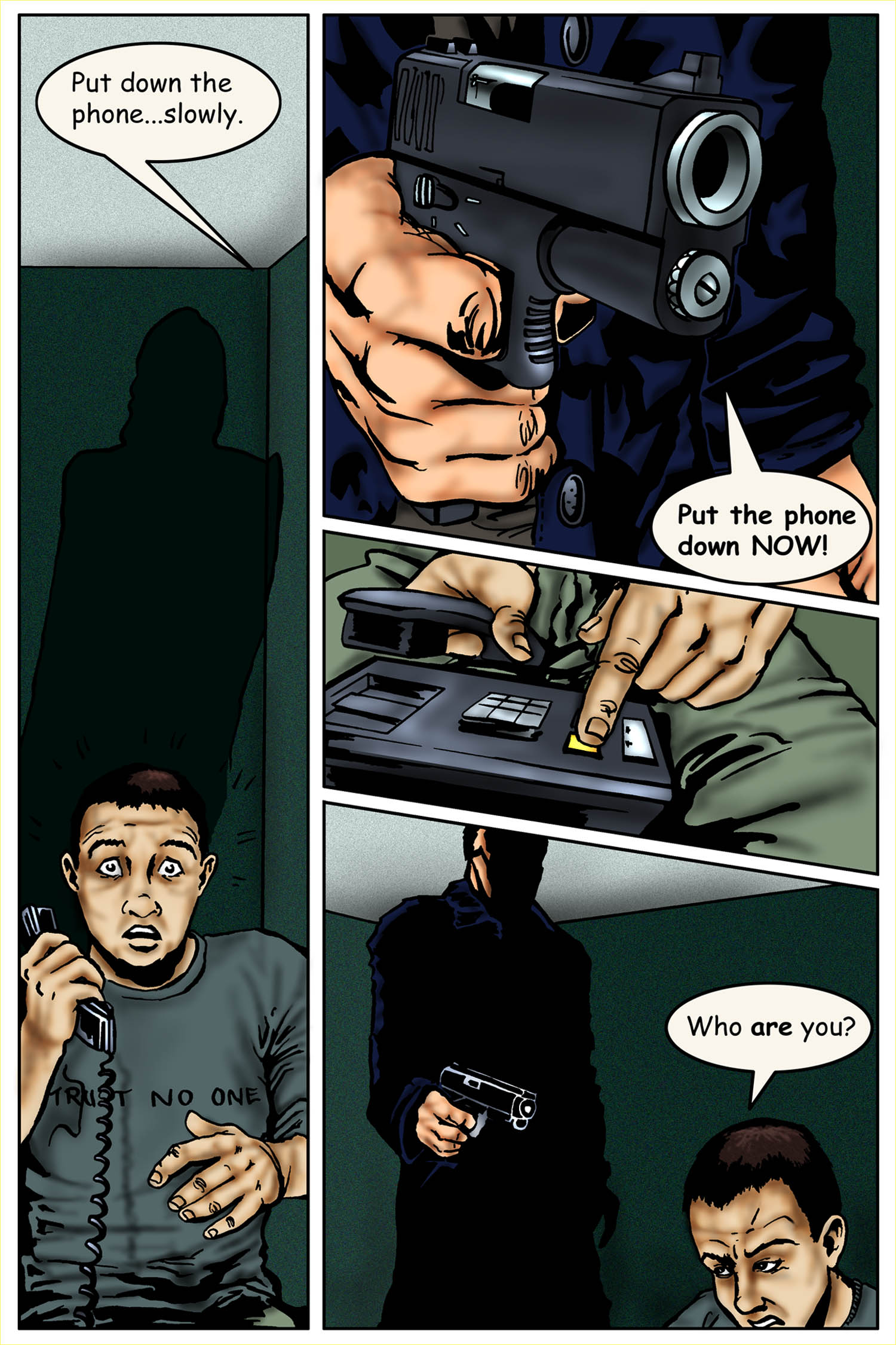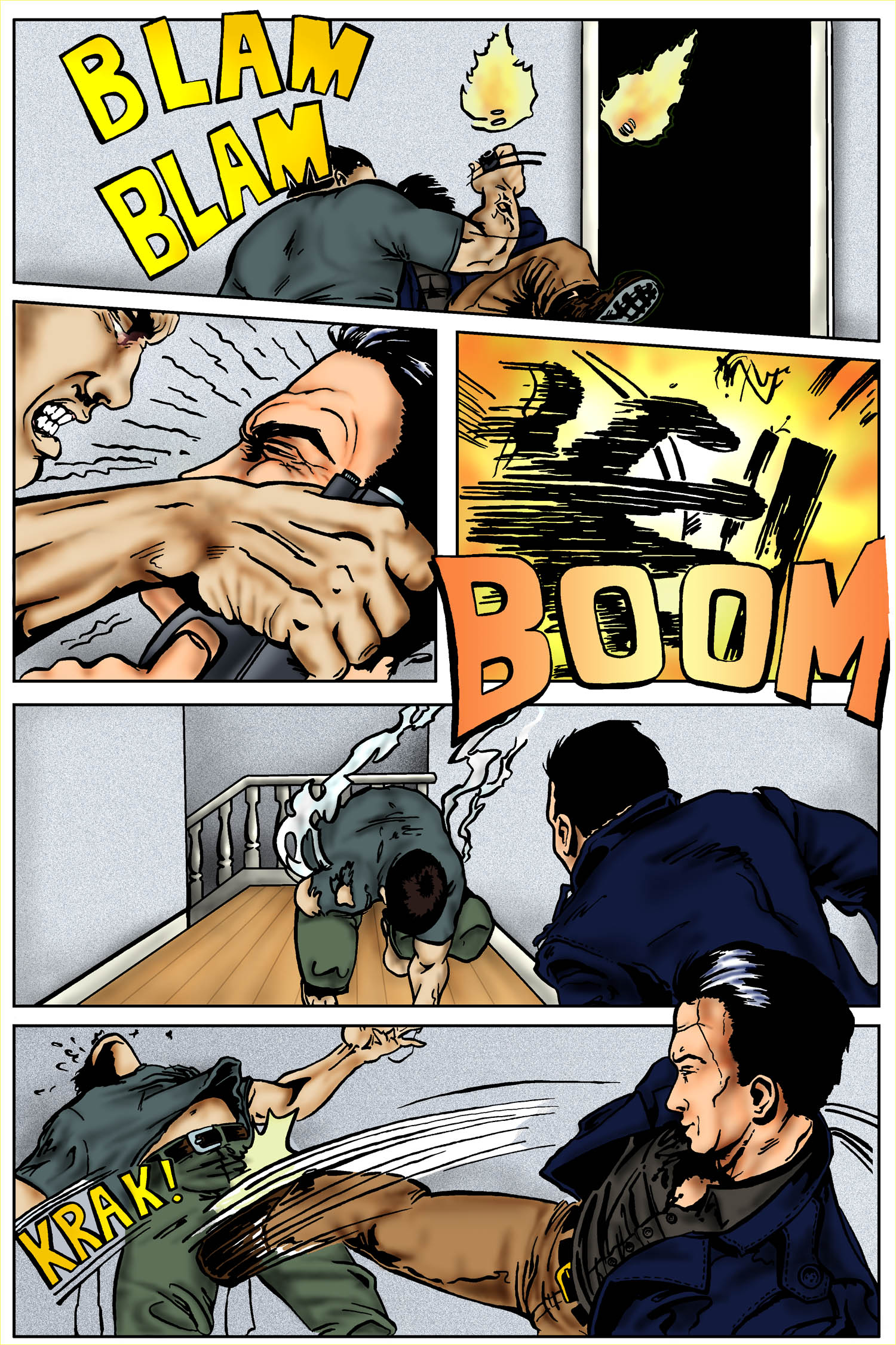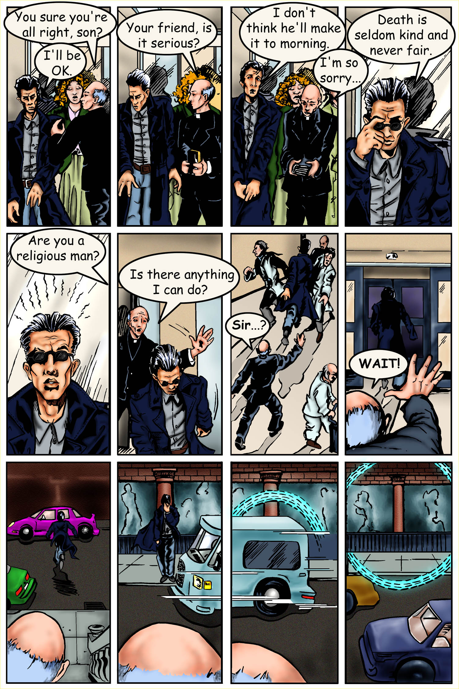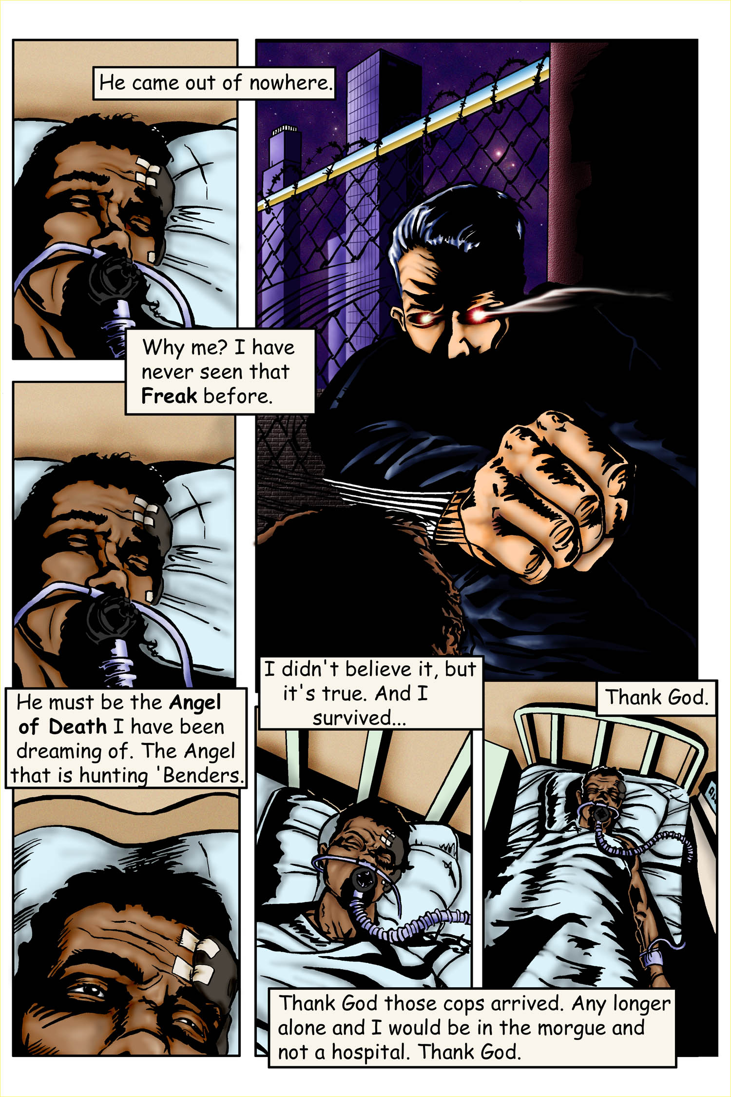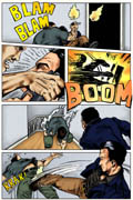 Page from Revelation Comic Book Brush and Ink drawing with Digital Layout, Colouring and Effects by Sheri Bowers Original Storyboarding and Pencils by Leo Lingas Text by Jeff Harrison Copyright Nexus TransMedia Corp.